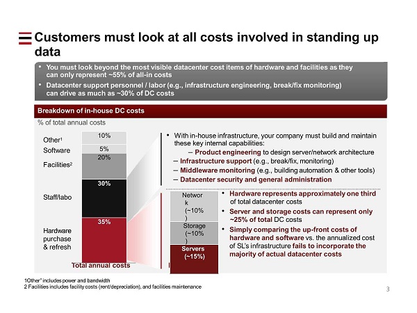 Muitos artigos estão sendo escritos sobre a eficiência de uso de energia (PUE) para construir nuvens a escala do Facebook e Google. Empresas só podem manter o ritmo com o TCIO de provedores de nuvem se inovarem e comandarem o custo da unidade de operação de data center além de reduções de hardware.